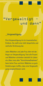 Anlässlich der Aktionen zum Internationalen Frauentag 2007 haben wir Bochumer Frauen gebeten, ihren Standpunkt zur Gewalt aufzuschreiben und davon Fotos gemacht. Daraus sind nebenstehendes Plakat und die Postkarten entstanden, die wir veröffentlicht haben.